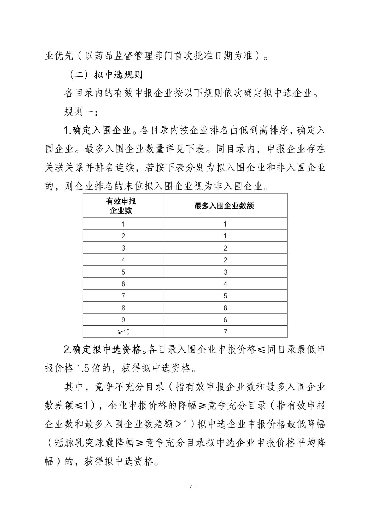 同目錄內(nèi),依據(jù)企業(yè)申報(bào)價(jià)格按照由低到高的順序確定排名,各目錄入圍企業(yè)申報(bào)價(jià)格≤同目錄最低申報(bào)價(jià)格1.5倍的,獲得擬中選資格。