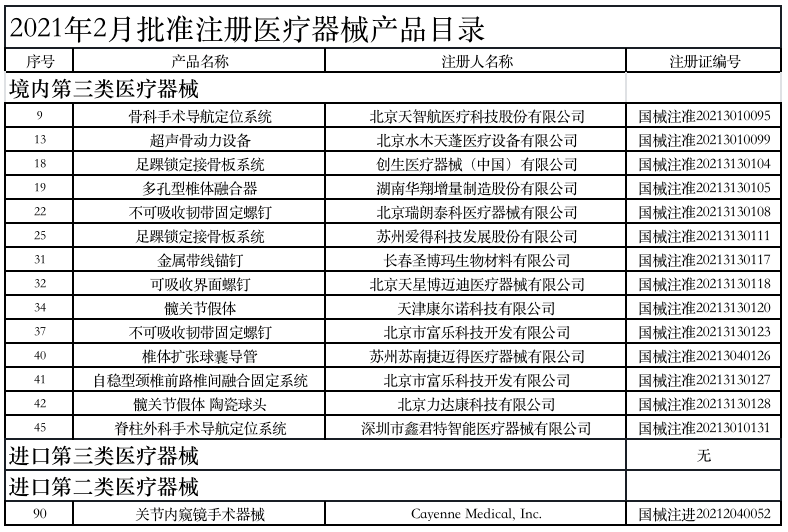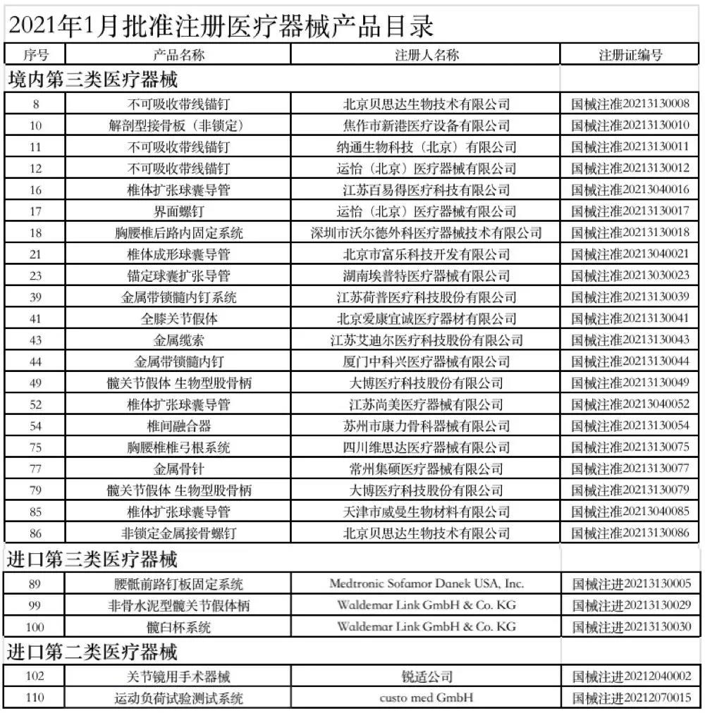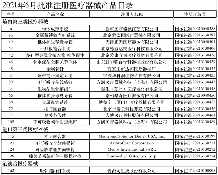 附:2021年1-6月獲批的骨科醫(yī)療器械產品
