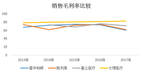 通過四家公司近五年來的毛利率與凈利率變動(dòng)情況不難看出,大博醫(yī)療的兩項(xiàng)指標(biāo)遙遙領(lǐng)先于其他三家。毛利率相互間的差距不算太大,但凈利率的差距還是很明顯的。