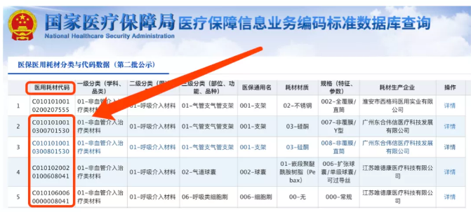 影響全國耗材的編碼,到底長什么樣子,今日公布的數(shù)據(jù)庫中便可以查詢到,點(diǎn)擊詳情后,還能看到更為具體的信息。