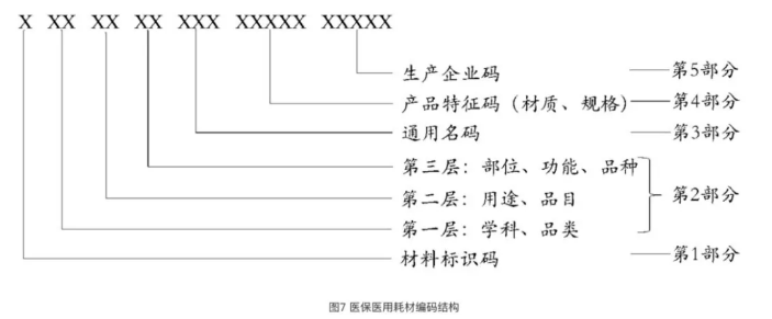 國家醫(yī)保局在《醫(yī)保疾病診斷和手術(shù)操作、藥品、醫(yī)療服務(wù)項(xiàng)目、醫(yī)用耗材四項(xiàng)信息業(yè)務(wù)編碼規(guī)則和方法》,對醫(yī)保醫(yī)用耗材編碼做了展示: