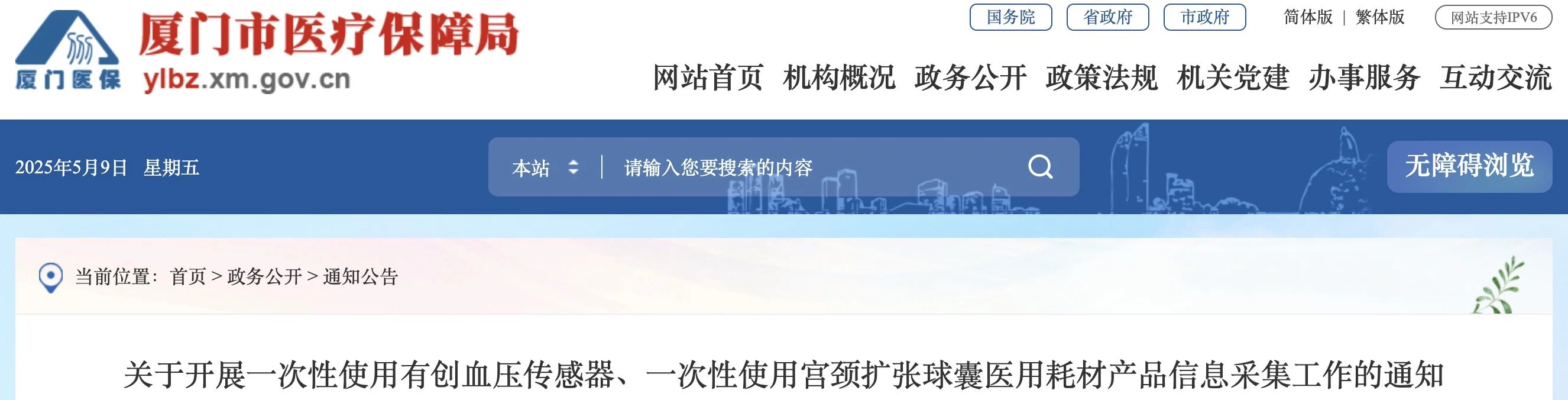 今日(5月9日),福建省廈門市醫(yī)保局發(fā)布《關于開展一次性使用有創(chuàng)血壓傳感器、一次性使用宮頸擴張球囊醫(yī)用耗材產品信息采集工作的通知》,信息維護時間為2025年5月12日08:00至5月20日17:00。