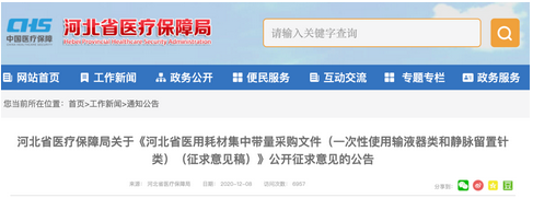 12月8日,據(jù)河北省醫(yī)保局消息,《河北省醫(yī)用耗材集中帶量采購(gòu)文件(一次性使用輸液器類和靜脈留置針類)(征求意見稿)》當(dāng)日發(fā)布,內(nèi)容的核心為進(jìn)一步降低醫(yī)用耗材虛高價(jià)格,規(guī)范醫(yī)療服務(wù)行為,保障臨床需求,減輕群眾就醫(yī)負(fù)擔(dān)。