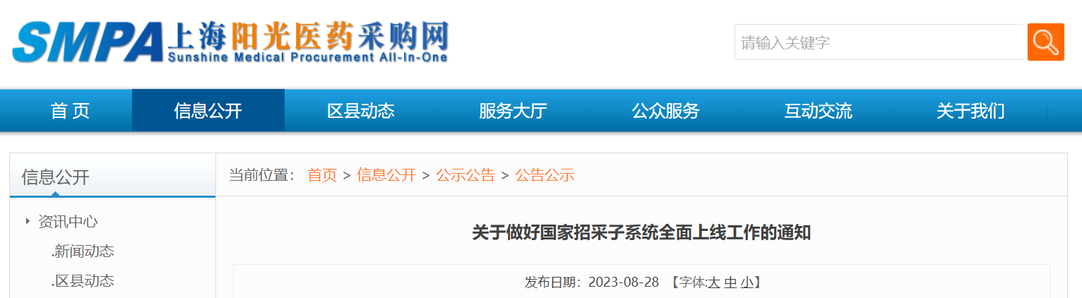 8月28日,上海市陽光醫(yī)藥采購網(wǎng)發(fā)布了《關(guān)于做好國家招采子系統(tǒng)全面上線工作的通知》,國家醫(yī)保信息平臺藥品和醫(yī)用耗材招采管理子系統(tǒng)(簡稱“招采子系統(tǒng)”)將于2023年9月11日全面上線應用,原陽光平臺采購功能停止使用。