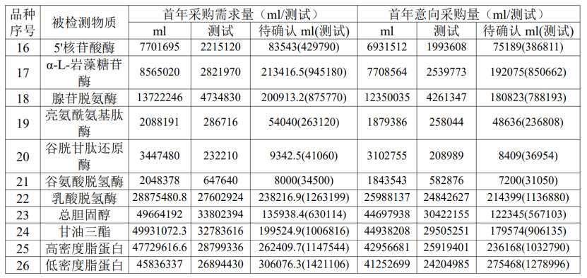 盡管凝血類、心梗類臨床檢驗(yàn)試劑集采尚在征求意見階段,但在化學(xué)發(fā)光試劑集采及肝功生化試劑集采之后,新的常規(guī)試劑品種出現(xiàn)在集采名單中,也在一定程度上說(shuō)明,常規(guī)試劑市場(chǎng)的大門,即將向帶量采購(gòu)徹底敞開。