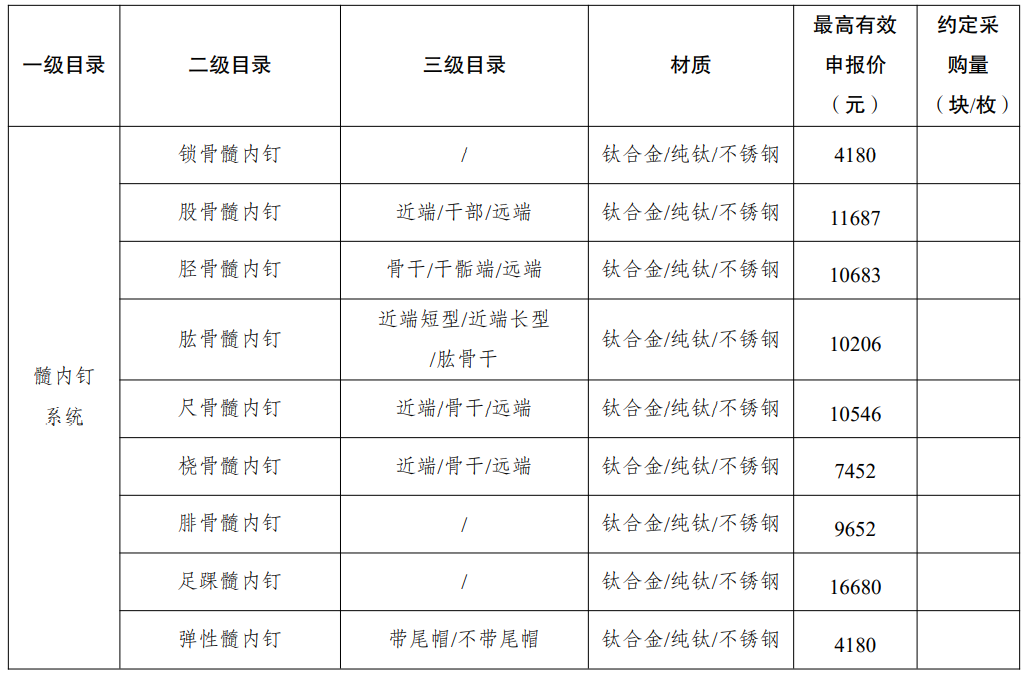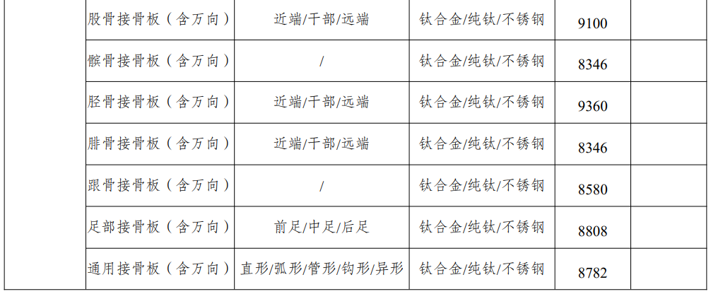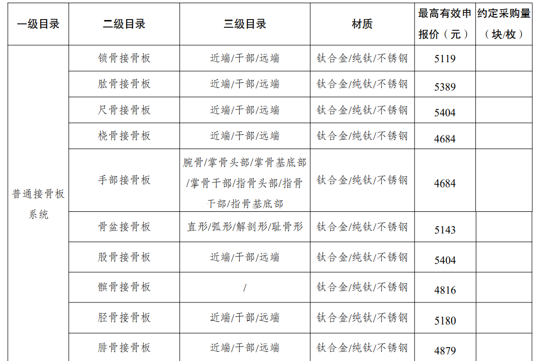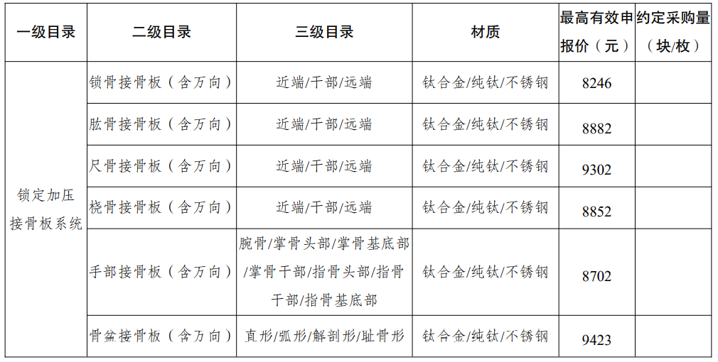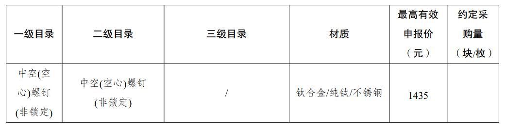 采購(gòu)品種:鎖定加壓接骨板系統(tǒng)、普通接骨板系統(tǒng)、髓內(nèi)釘系統(tǒng)、單獨(dú)使用的螺釘?shù)裙强苿?chuàng)傷類產(chǎn)品,以及部分5mm集成超聲刀頭。