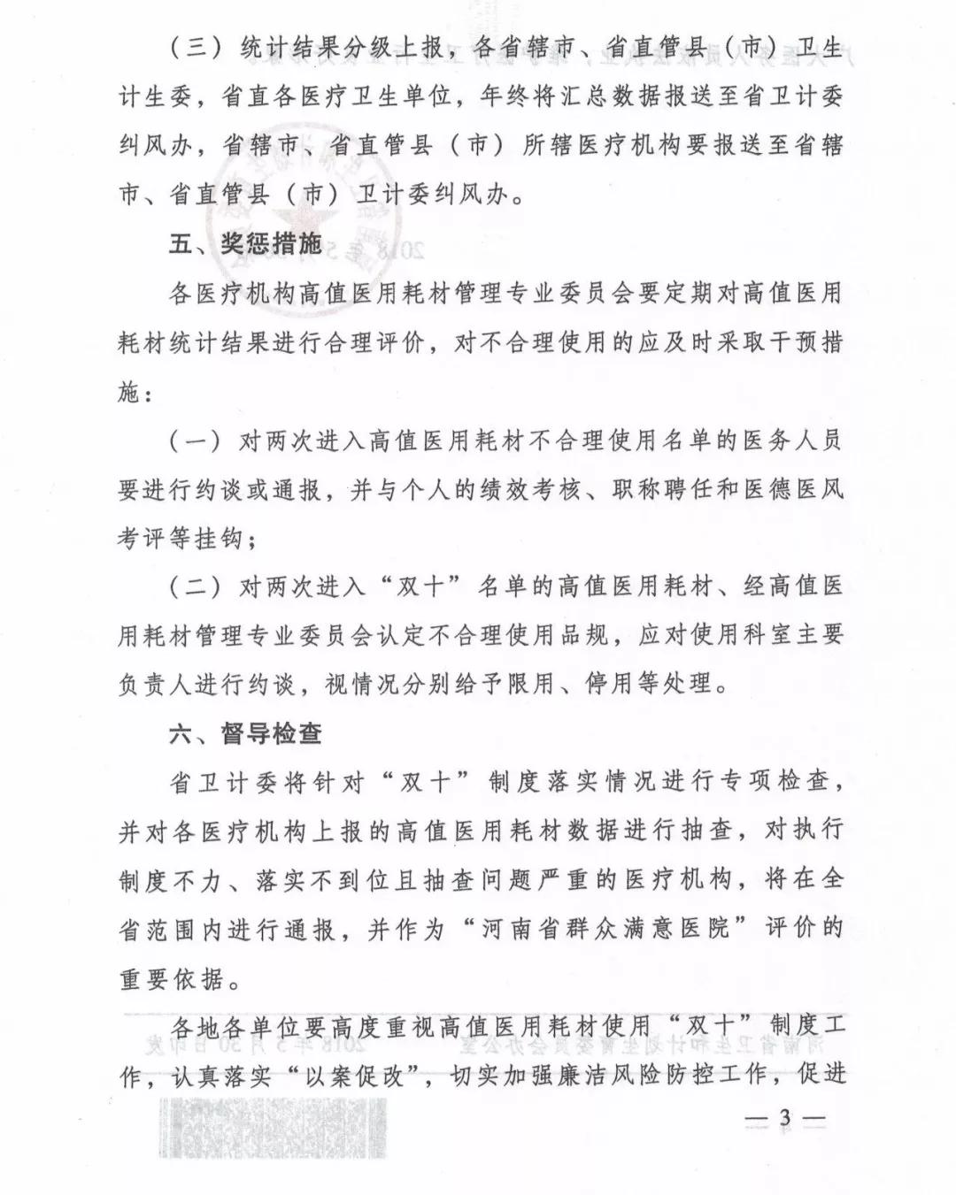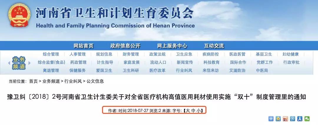 7月27日,河南省衛(wèi)生和計劃生育委員會發(fā)布《關(guān)于對全省醫(yī)療機構(gòu)高值醫(yī)用耗材使用實施“雙十”制度管理里的通知》,將全省耗材控費再升級,銷量兩次進入前10的,有可能會被停用,開單的醫(yī)生也將被上報到醫(yī)療糾風辦,在績效考核、職稱聘任、醫(yī)德醫(yī)風考評中受到影響。