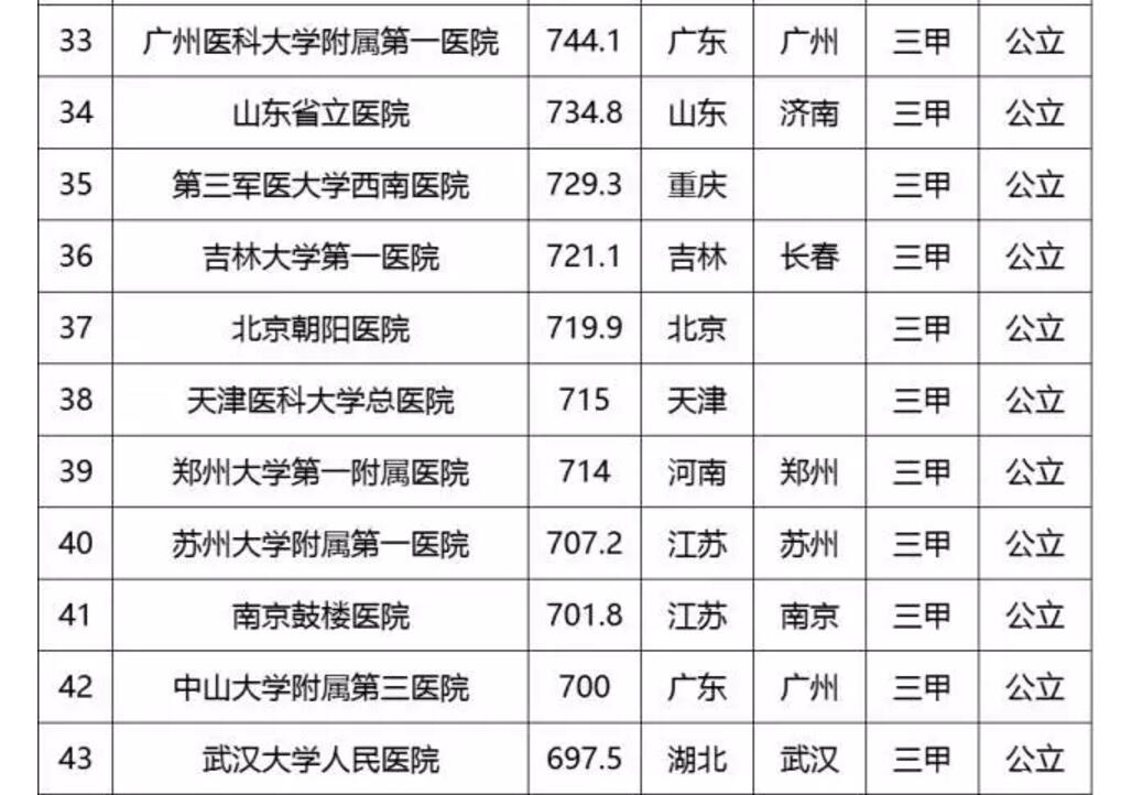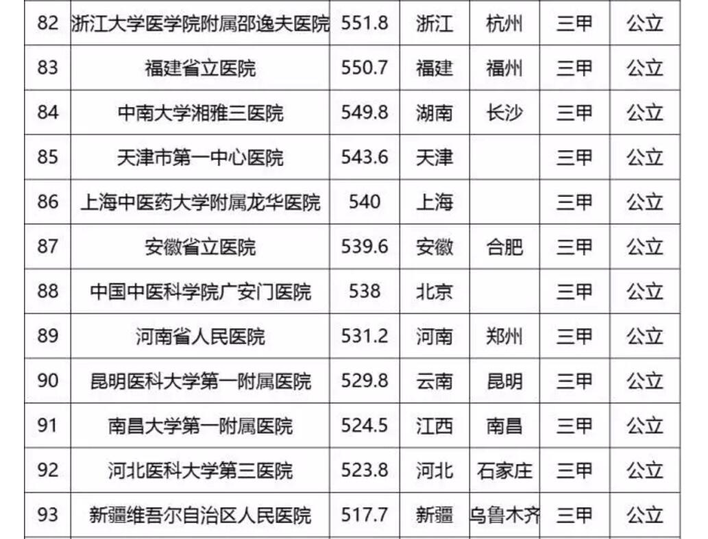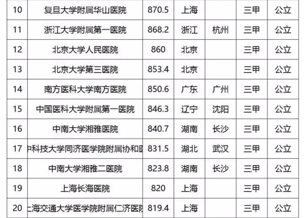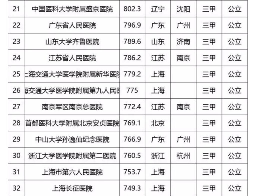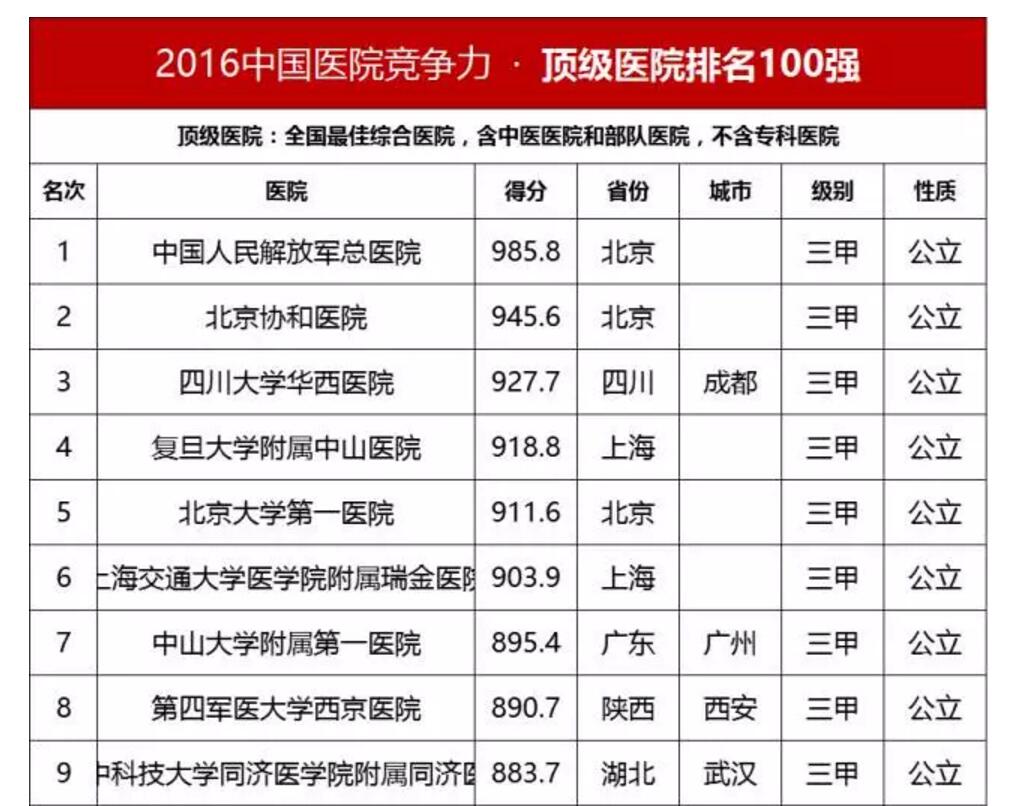 中國(guó)頂級(jí)醫(yī)院百?gòu)?qiáng)榜出爐:協(xié)和第2 華西第3