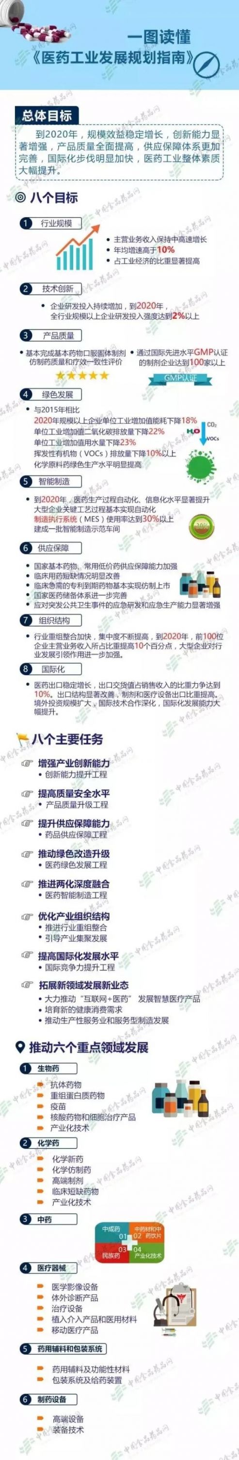 根據(jù)《指南》顯示,到2020年,我國醫(yī)藥產(chǎn)業(yè)規(guī)模效益穩(wěn)定增長(zhǎng),創(chuàng)新能力顯著增強(qiáng),產(chǎn)品質(zhì)量全面提高,供應(yīng)保障體系更加完善,國際化步伐明顯加快,醫(yī)藥工業(yè)整體素質(zhì)大幅提升。
