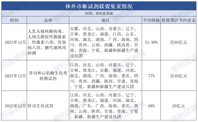 截至目前,體外診斷已經(jīng)歷多輪聯(lián)盟集采,覆蓋了全國絕大多數(shù)省市,具體如下: