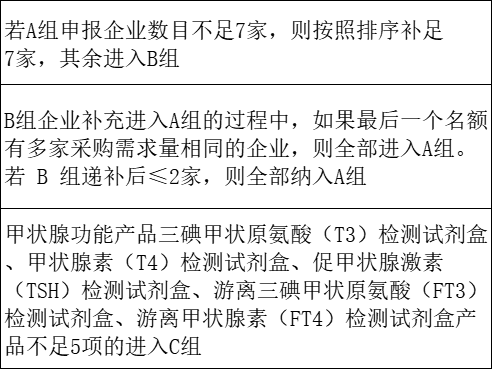 具體規(guī)則上,本次集采對兩類產(chǎn)品開展品分別組套采購,組套內(nèi)所有產(chǎn)品首年意向采購量累計相加后排序,累計意向采購量前 90%涵蓋的企業(yè)進入A競價單元組,其余進入B競價單元組,其他情況如下:
