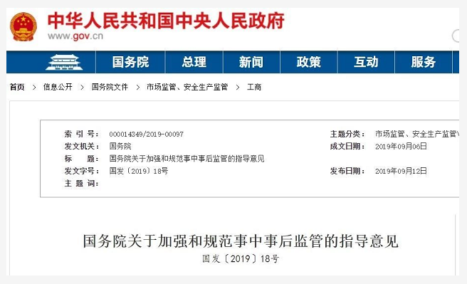 近日,國務院發(fā)布《國務院關于加強和規(guī)范事中事后監(jiān)管的指導意見》(下稱《指導意見》)表示,要對直接涉及人民群眾生命健康等特殊重點領域,依法依規(guī)實行全覆蓋的重點監(jiān)管。