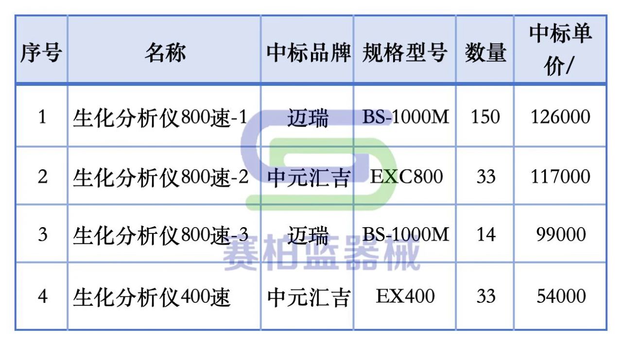 5月26日,河南省衛(wèi)生健康委員會(huì)河南省縣域醫(yī)共體設(shè)備更新項(xiàng)目(一期)項(xiàng)目-全自動(dòng)生化分析儀中標(biāo)公告發(fā)布,該項(xiàng)目共采購全自動(dòng)生化分析儀230臺(tái),4個(gè)包預(yù)算金額共計(jì)5762萬元。