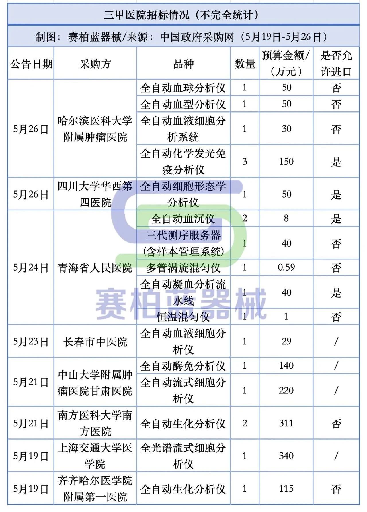 5月26日,海南衛(wèi)健委發(fā)布《關(guān)于召開檢驗(yàn)類設(shè)備(313臺(tái),預(yù)算1.26億元)調(diào)研會(huì)的公告》。海南省衛(wèi)生健康委員會(huì)藥具管理中心計(jì)劃近期召開2024年超長期特別國債“以舊換新”項(xiàng)目醫(yī)療設(shè)備檢驗(yàn)類設(shè)備調(diào)研會(huì),檢驗(yàn)類設(shè)備共313臺(tái),預(yù)算12677萬元。