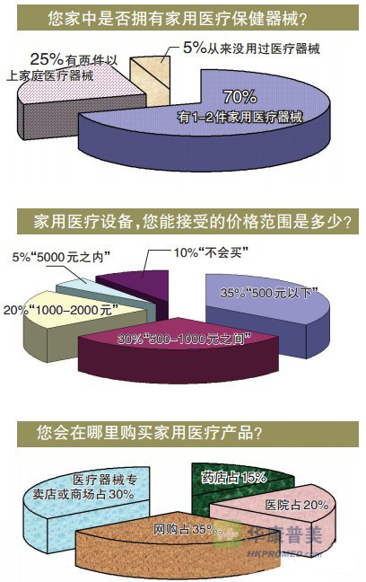“如果需要,您會在哪里購買家用醫(yī)療產(chǎn)品?”回答顯示,藥店占15%;醫(yī)院占20%;醫(yī)療器械專賣店或商場占30%;網(wǎng)購占35%。