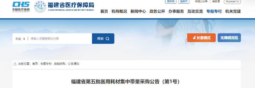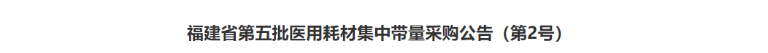 8月9日,福建省醫(yī)保局發(fā)布《福建省第五批醫(yī)用耗材集中帶量采購公告(第1號)》及《福建省第五批醫(yī)用耗材集中帶量采購公告(第2號)》(附文末)。