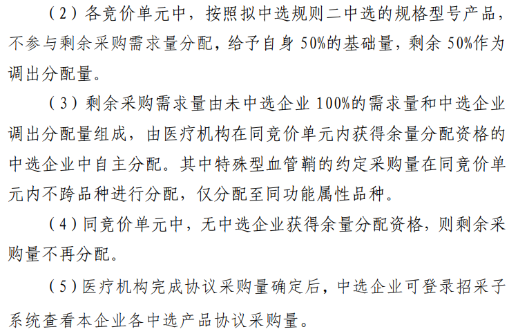 本次集采設(shè)置了兩檔降幅。企業(yè)降幅達到中選降幅的,獲得擬中選資格;企業(yè)降幅達分量降幅的,獲得參與剩余采購量分配資格。