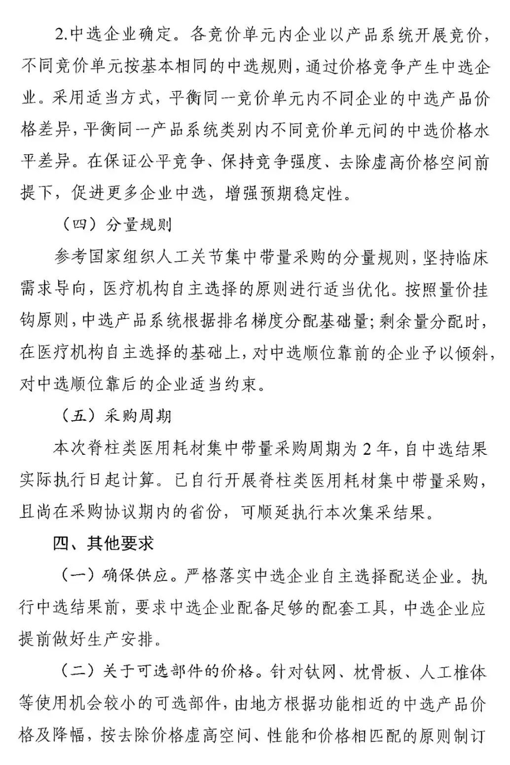 以不低于醫(yī)療機(jī)構(gòu)填報(bào)需求量的80%作為本次集采的意向采購量,采購周期2年。已自行開展脊柱類醫(yī)用耗材集中帶量采購,且尚在采購協(xié)議期內(nèi)的省份,可順延執(zhí)行本次集采結(jié)果。