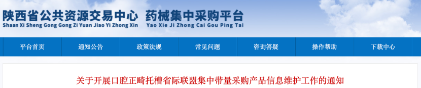 8月22日,陜西公共資源交易中心發(fā)布《關(guān)于開展口腔正畸托槽省際聯(lián)盟集中帶量采購產(chǎn)品信息維護(hù)工作的通知》。