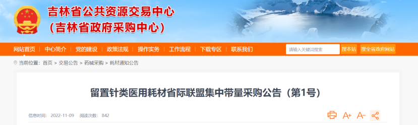 11月9日,吉林省公共資源交易中心發(fā)布《留置針類醫(yī)用耗材省際聯(lián)盟集中帶量采購(gòu)公告(第1號(hào))》(以下簡(jiǎn)稱《公告》)。