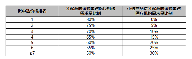 協(xié)議采購(gòu)量確定方面,各競(jìng)價(jià)組中選企業(yè)按中選價(jià)格由低到高排序,梯度分配意向采購(gòu)量。