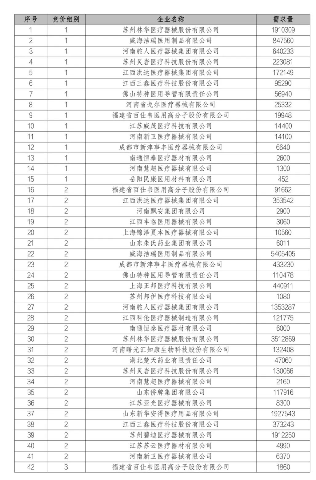 據(jù)觀察,蘇州碧迪醫(yī)療、林華醫(yī)療、威海潔瑞(威高股份子公司)、駝人醫(yī)療等企業(yè)在此次集采聯(lián)盟地區(qū)均有較大需求量。