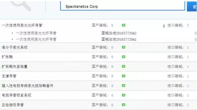 在國家藥監(jiān)總局的查詢系統(tǒng)中,目前,Spectranetics在中國一共擁有9個產(chǎn)品注冊證,包括: