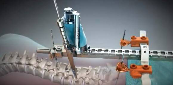 圖為mazor Renaissance系統(tǒng)術(shù)中示意圖