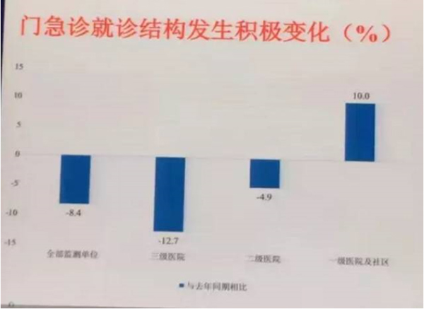 醫(yī)改運(yùn)行100天,全市完成了6000萬人次的診療服務(wù),3100所參與醫(yī)改的醫(yī)療機(jī)構(gòu)運(yùn)行情況平穩(wěn)。日常監(jiān)測信息顯示,三級(jí)醫(yī)院的門診量減少了12.7%,“最高的時(shí)候曾經(jīng)減少到了16%。”雷海潮介紹說,二級(jí)醫(yī)院也有所下降,而基層醫(yī)療衛(wèi)生機(jī)構(gòu)和一級(jí)醫(yī)院的診療量出現(xiàn)了明顯上升,增幅達(dá)10%。