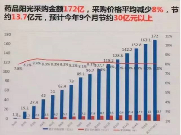 此外,藥品費(fèi)用這一項(xiàng),陽光采購實(shí)現(xiàn)了藥費(fèi)節(jié)省13.7億,累計(jì)藥品平均價(jià)格下降程度超過了8%。雷海潮介紹說,4月8日開始醫(yī)改后,藥品陽光采購已產(chǎn)生了172億的市場交易。預(yù)計(jì)全年能夠節(jié)省藥品費(fèi)用在30億元以上。其中,二、三級(jí)醫(yī)院的藥占比從42.2%下降到34.4%,目前下降趨勢(shì)仍在持續(xù)。