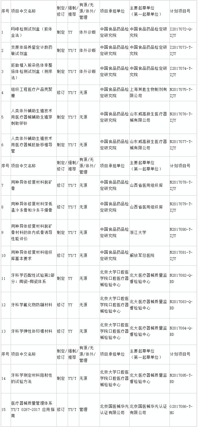 1.2017年中央補助地方醫(yī)療器械標(biāo)準(zhǔn)制修訂項目