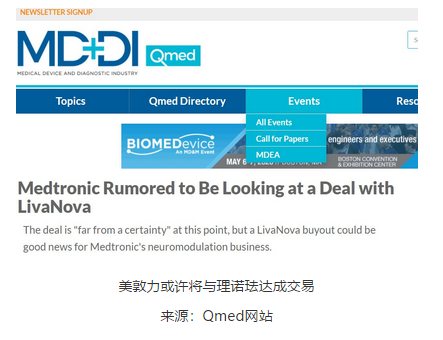 據(jù)了解,2015年,神經(jīng)調(diào)節(jié)醫(yī)療器械的領(lǐng)導(dǎo)者Cyberonics公司以27億美元收購意大利公司索林集團(tuán)合并成立新公司LivaNova。
