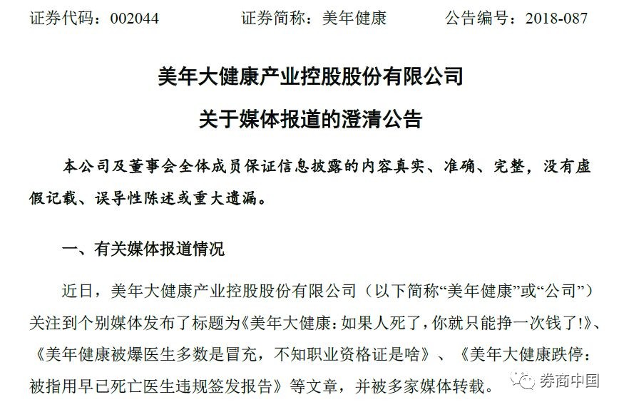 7月30日晚間,美年健康再度發(fā)布澄清公告。