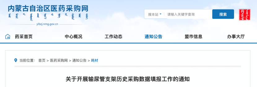 8月8日,內(nèi)蒙古自治區(qū)醫(yī)藥采購(gòu)網(wǎng)發(fā)布《關(guān)于開展輸尿管支架歷史采購(gòu)數(shù)據(jù)填報(bào)工作的通知》(以下簡(jiǎn)稱《通知》),內(nèi)蒙古將開展輸尿管支架歷史采購(gòu)數(shù)據(jù)填報(bào)工作。