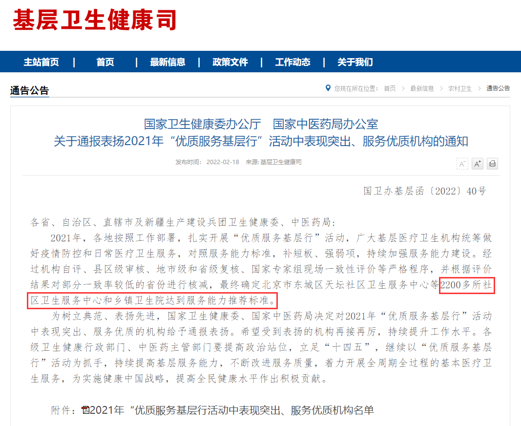 近日,國家衛(wèi)健委、國家中醫(yī)藥局聯(lián)合發(fā)表關(guān)于通報(bào)表揚(yáng)2021年“優(yōu)質(zhì)服務(wù)基層行”活動(dòng)中表現(xiàn)突出、服務(wù)優(yōu)質(zhì)機(jī)構(gòu)的通知。