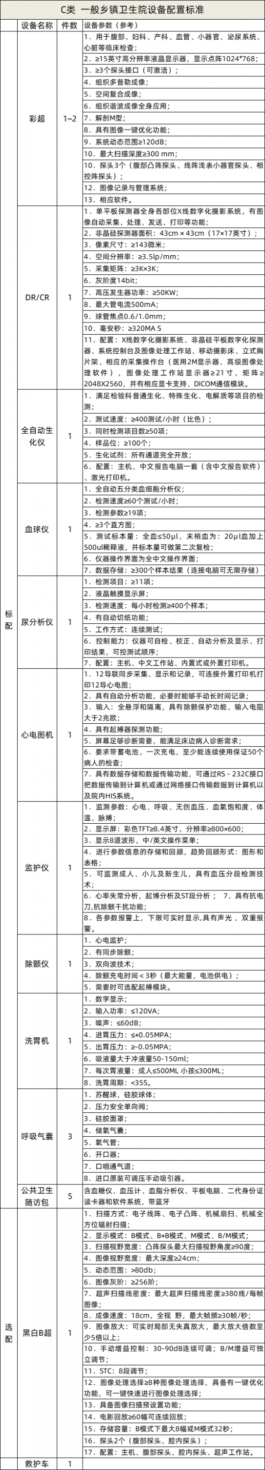 首先是縣級醫(yī)院醫(yī)療器械配置表: