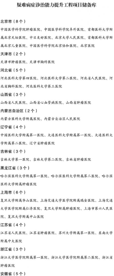 國家加大投入推動(dòng)醫(yī)院改革,推進(jìn)分級(jí)診療,疑難病癥診治能力提升工程項(xiàng)目儲(chǔ)備庫名單: