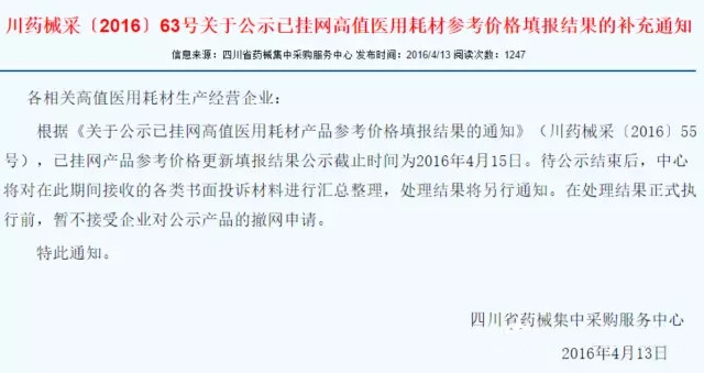四川省自2014年7月16日正式執(zhí)行高值醫(yī)用耗材集中掛網(wǎng)陽(yáng)光采購(gòu)后,以川人的勇猛成為與浙江、安徽并列的屠價(jià)大省。