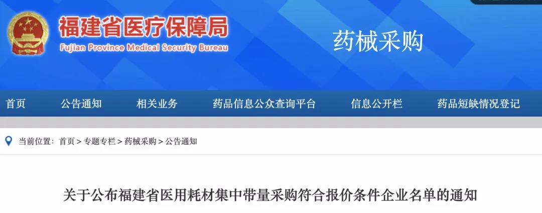 日前,福建省醫(yī)保局發(fā)布通知:根據(jù)該省醫(yī)用耗材集中帶量采購工作安排,經(jīng)省醫(yī)保局同意,現(xiàn)將符合報價條件企業(yè)名單予以公布,請相關企業(yè)做好申報報價準備工作。