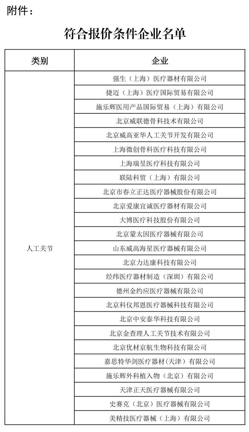 其中人工關節(jié)類參會企業(yè)包括強生、捷邁、施樂輝、史賽克等25家械企;