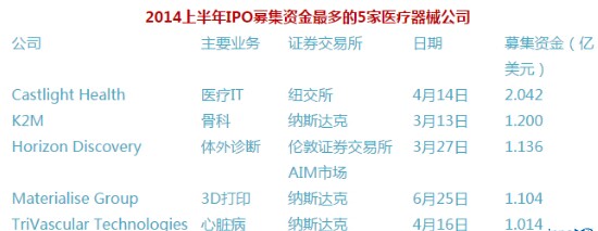 今年出現(xiàn)的另一個(gè)新趨勢(shì)是,過(guò)去公司們更愿意保持獨(dú)立,而現(xiàn)在則期望交易。分析顯示,今年上半年醫(yī)療器械公司通過(guò)IPO募集了13億美元資金。這個(gè)數(shù)字比2013年全年的9億美元還要多44%。
