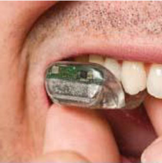 與骨錨式助聽器相似,麥克風(fēng)會將信號傳輸給后磨牙附著裝置,信號使牙齒和頭皮震動進(jìn)而刺激耳蝸。和植入耳蝸不同,SoundBite根本不需要頭皮上鉆孔或者牙齒植入。