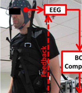 恢復(fù)脊髓受損患者的步行能力是世界各地許多研究小組的共同目標(biāo),很多人試圖修復(fù)患者受損的神經(jīng),積極尋找讓信息直接越過受損位點(diǎn)傳輸?shù)姆椒?。長灘退伍軍人事務(wù)醫(yī)學(xué)中心的研究人員在arXiv期刊展示了最新研究成果,他們開發(fā)出了一種步行步態(tài)矯正器,使用一個腦電圖帽作為接口,控制病人動作。他們希望這項(xiàng)廉價、簡單又非侵入性的技術(shù),可以讓截癱患者再次行走。
