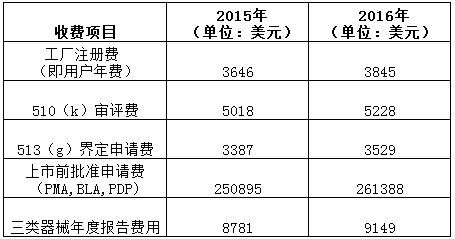 FDA正式發(fā)布2016財政年度醫(yī)療器械收費標準