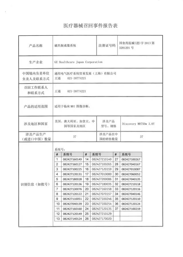 通用電氣醫(yī)療系統(tǒng)貿(mào)易發(fā)展(上海)有限公司報(bào)告:企業(yè)發(fā)現(xiàn),在磁體內(nèi)壁的小范圍區(qū)域,在特定掃描狀態(tài)下產(chǎn)生的溫度對(duì)直接接觸或未使用填充墊的患者可能造成風(fēng)險(xiǎn)。公司決定召回相關(guān)產(chǎn)品,本次召回級(jí)別II級(jí),涉及產(chǎn)品的型號(hào)、規(guī)格及批次等詳細(xì)信息見《醫(yī)療器械召回事件報(bào)告表》。