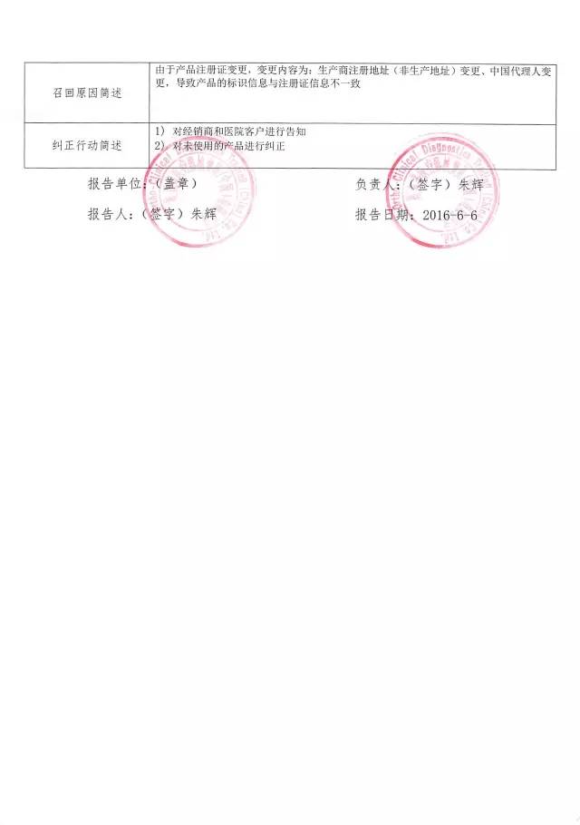 奧森多醫(yī)療器械貿(mào)易(中國)有限公司報(bào)告:企業(yè)發(fā)現(xiàn),涉及產(chǎn)品進(jìn)行血漿或血清檢測時(shí)出現(xiàn)偏差結(jié)果。公司決定召回相關(guān)產(chǎn)品,本次召回級(jí)別II級(jí),涉及產(chǎn)品的型號(hào)、規(guī)格及批次等詳細(xì)信息見《醫(yī)療器械召回事件報(bào)告表》。