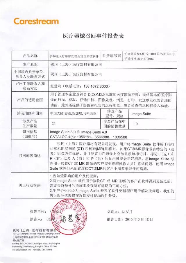 11、銳珂(上海)醫(yī)療器材有限公司對(duì)多功能醫(yī)療影像處理及管理系統(tǒng)軟件主動(dòng)召回