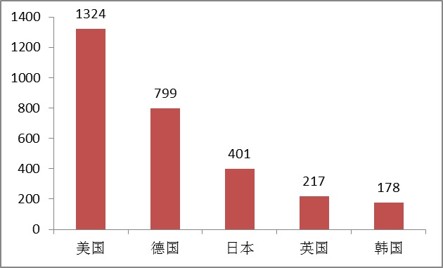 2015年,美國(guó)、德國(guó)、日本、英國(guó)和韓國(guó)醫(yī)療器械在中國(guó)醫(yī)療器械注冊(cè)數(shù)量排前五位,約占2015年進(jìn)口產(chǎn)品首次、延續(xù)注冊(cè)總數(shù)量的67%。