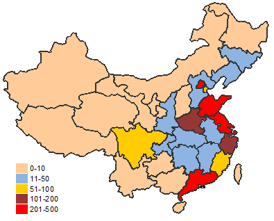 圖11.境內(nèi)第三類醫(yī)療器械省份注冊(cè)分布圖