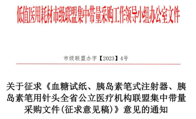 其中指出,九江市第一人民醫(yī)院將牽頭開(kāi)展江西全省血糖試紙、胰島素筆式注射器、胰島素筆用針頭公立醫(yī)療機(jī)構(gòu)聯(lián)盟集采。